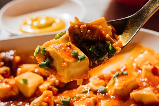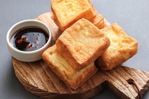 Trưa: Gạo lứt, rau xào và đậu phụ.
